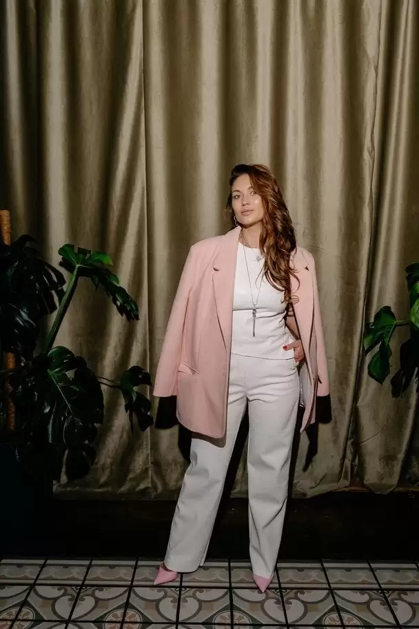 Акторка з’явилася на івенті у стильному образі, у якому мала гарний і стрункий вигляд. На ній був білий топ і білі шкіряні штани вільного крою. На плечі Анна накинула ніжно-рожевий жакет.