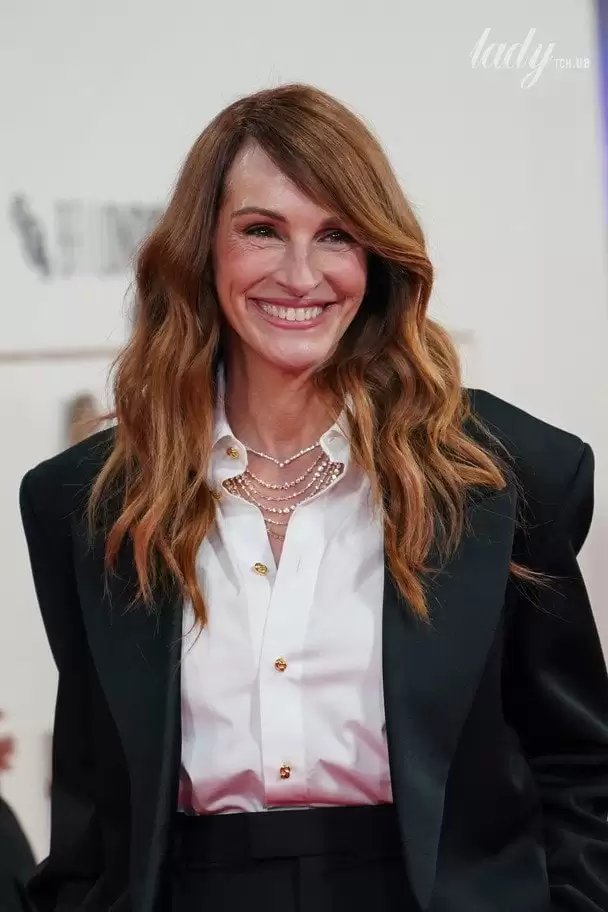 Джулія розпустила своє густе волосся, уклавши його красивими хвилями, зробила виразний макіяж і доповнила лук дорогоцінним кольє на шиї.
