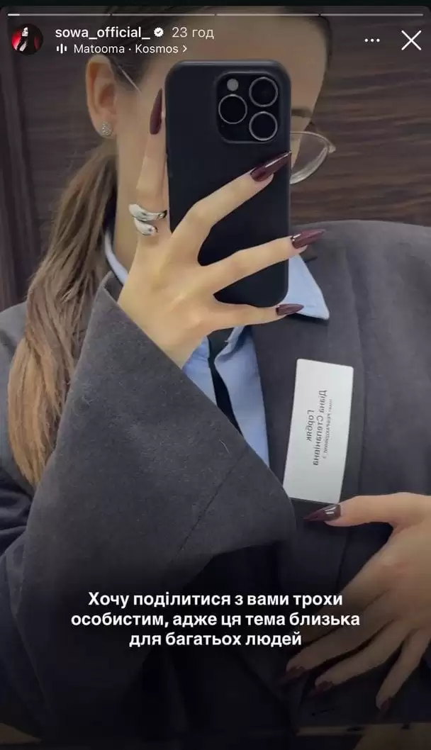 “Сьогодні було друге обстеження. Мені досі не дали остаточних рекомендацій щодо операції. Лікар пояснив, що у 95,5% людей формування очного яблука завершується у 17–18 років. І є ті 5%, у кого цей процес триває довше. До цієї меншості належу я”, — розповідає Sowa.